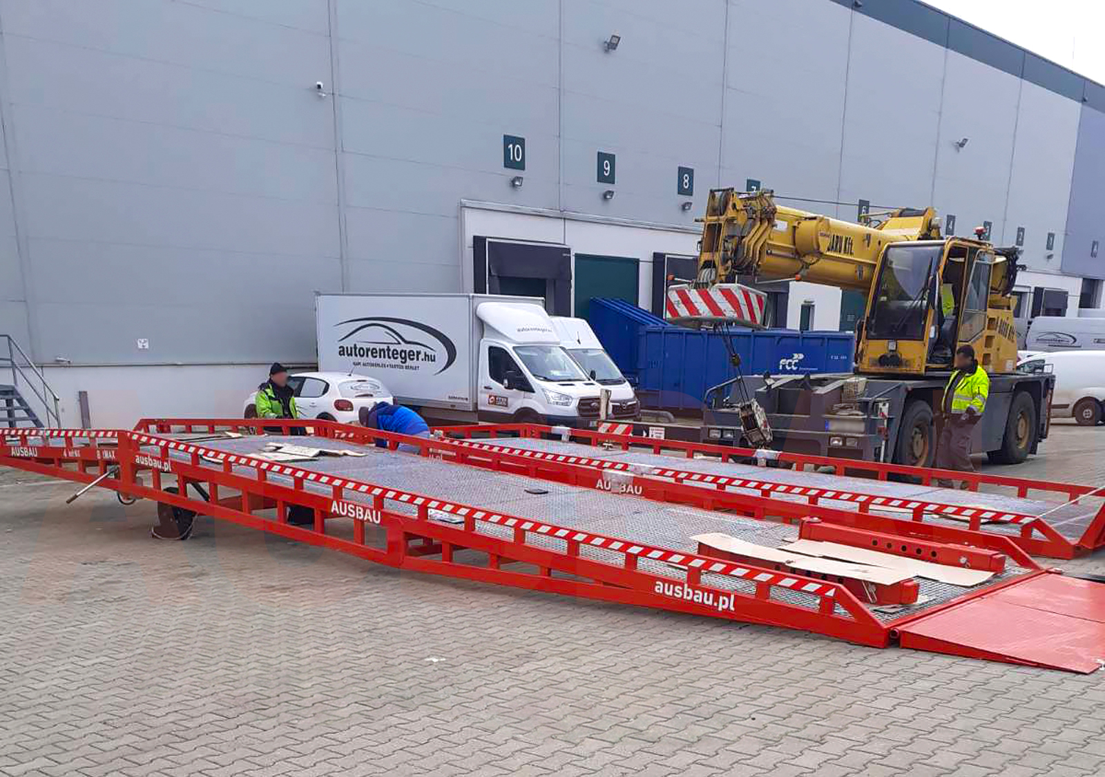 GaleriaRampa móvil AUSBAU Rampa de carga móvil AUSBAU a medida Rampa de carga móvil con patas de apoyo telescópicas Rampa de carga móvil para contenedores Rampas de carga móviles para maquinaria agrícola Rampas y plataformas de carga personalizadas Rampa de carga y descarga fija AUSBAU-ST (sin plataforma horizontal) Rampa para cargar camiones fija AUSBAU-STB (con plataforma horizontal) Rampas para muelles de carga AUSBAU-DG (tipo «Almacén-Tierra») Rampas de carga para vehículos comerciales de poco tonelaje AUSBAU-VR Plataforma de carga AUSBAU-PLT